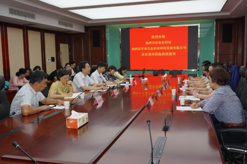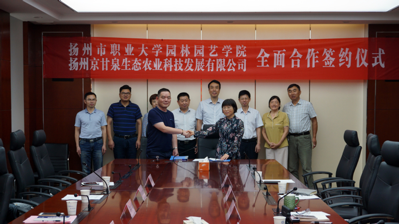 为了进一步深化产教融合,充分发挥学院的人才和技术优势,服务地方农业产业的发展,经过前期认真的调研和考察,7月17日上午,betway必威中文版 园林园艺学院与扬州京甘泉生态农业科技发展有限公司在崇德楼316会议室举行了全面合作的签约仪式。出席此次签约仪式的有扬州市农业农村局调研员苏家富、科教处处长袁秋华、乡村产业发展处处长王波,扬州京甘泉生态农业科技发展有限公司法人兼总经理马久明、副总经理周洁,betway必威中文版 副校长王如平、教务处处长邵汝军,科技产业处、园林园艺学院负责人和专业教师。