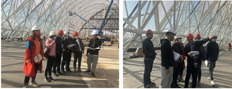 世园会企业施工方表达了对我院专业团队能力的肯定与赞同,也对此次的校企合作项目工作进展表示满意。最后团队教师对现场的设计服务条件进行了详细的踏勘与记录。