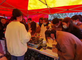 “熊童子、条纹十二卷、黑兔耳、火祭、绿铃、乙女心......”这些既陌生又熟悉的多肉品种走进大家的视野中,一盆盆饱满的多肉舒展身姿,等待同学们前来领养。许多爱好种植的同学纷纷来到领养现场,挑选自己心仪的绿植。