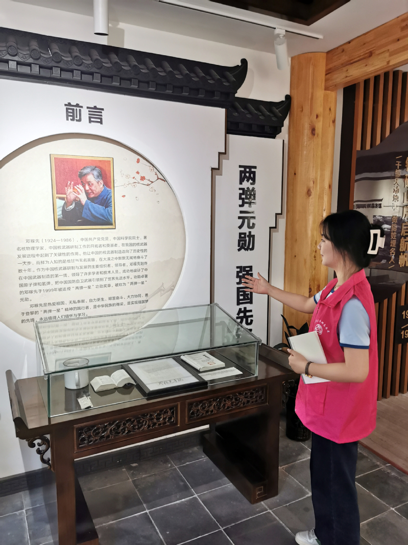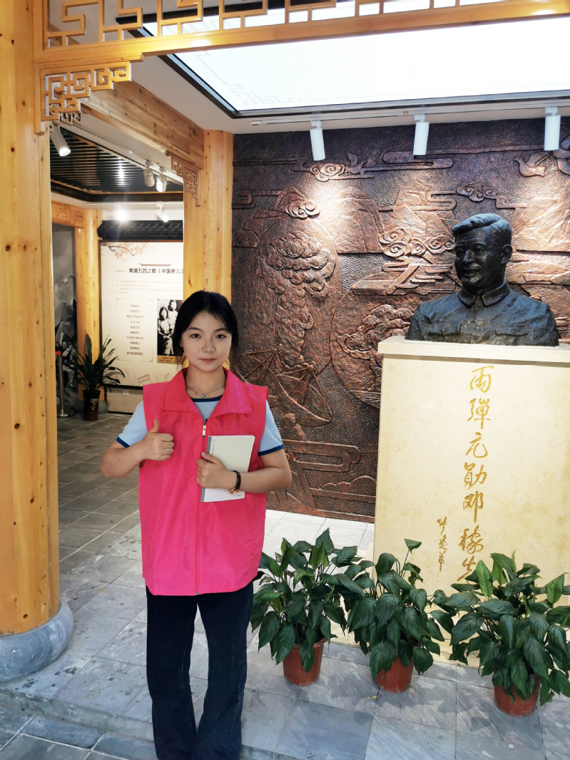 章雨同学表示:“很荣幸能在这个红色基地进行志愿服务,我体验着这份志愿的神圣与高尚,当我为游客们讲解邓稼先先生的生平以及为国贡献的事迹时,心里会充满敬意并感到自豪和幸福。”