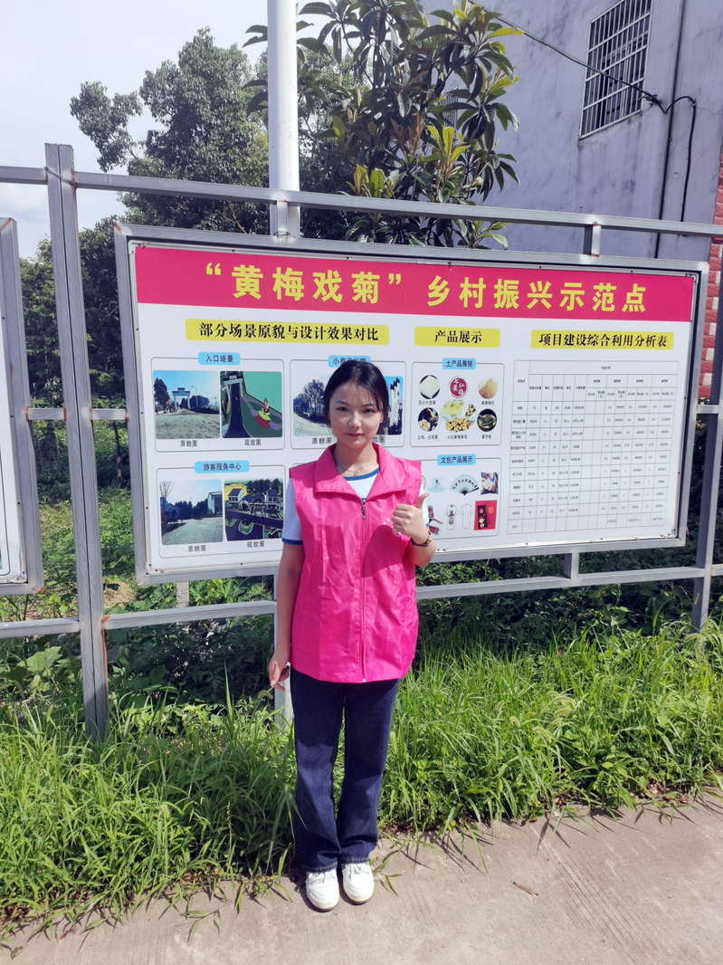 在负责人的带领下,章雨同学不仅参观了严凤英的故居、各种农业实践基地,感受着黄梅文化,还了解到了黄梅村从以前的一个贫穷落后的村庄到现在是安徽省美丽乡村重点示范村,这是离不开村民们的齐心协力搞建设的决心和毅力的。在这里,章雨同学用自己所学的专业帮助了一些农业实践基地更好的了解到了病虫害防治和植物学的相关农业知识,同时,她也积累了不少农业实践的经验。通过此次暑期实践,章雨同学由衷地希望乡村全面发展,更快推动农业农村现代化,让广大农民生活过得越来越好。