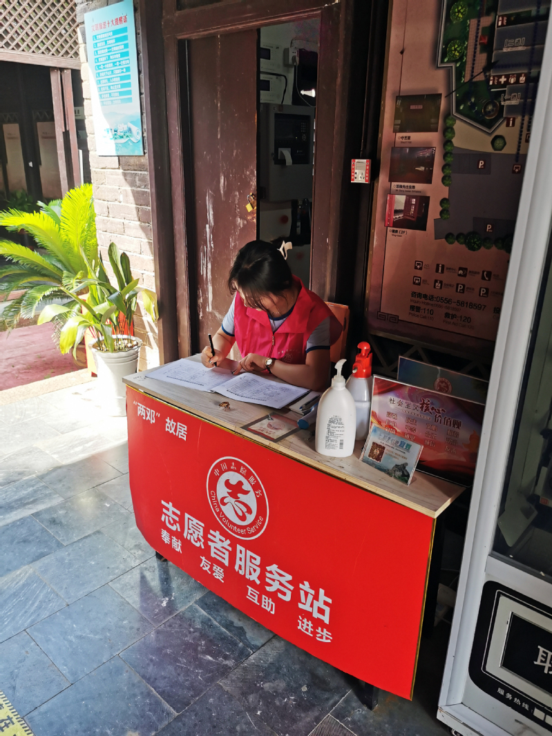首先,她来到了邓稼先的故居,村干部很热心地进行简洁说明后带领她参观故居,熟悉了这些之后,章雨同学主动提出志愿登记来访游客信息和引导参观人员的任务。