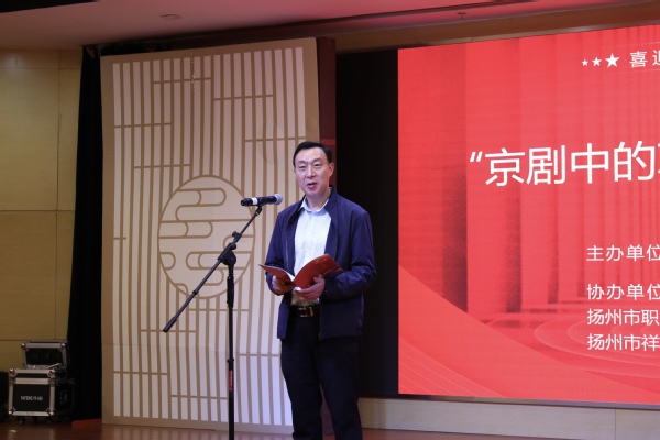 在党的二十大即将胜利召开之际,为进一步做好党员发展对象培训班工作,提升党员发展质量,10月11日,一场以“京剧中的革命奋斗史”为主题的党课在我校芳华剧场举办。党委副书记、校长林刚出席了活动并讲话。这堂党课由党委副书记、副校长许金如教授主讲,以经典京剧选段中的革命奋斗故事为主线讲述了百年辉煌党史,扬州市文化馆祥伶京剧社的老师们作为现场表演嘉宾。
