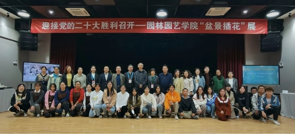 近日,园林园艺学院师生“盆景插花展”在学校映月剧场拉开帷幕,展览设花艺作品展示区、盆景作品展示区以及花艺盆景体验区,学院师生以插花和盆景技艺把美好的祝愿通过专业技能献礼二十大,本次活动也是学院园林技术专业现代学徒制试点改革和扬州园林营造技艺技能传承创新的成果汇报展示,得到了学校相关领导的大力关心和支持,党委副书记、校长林刚,副校长吴书安,党委宣传部、教务处主要负责人等亲临展览现场。