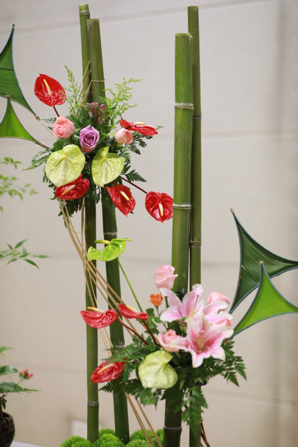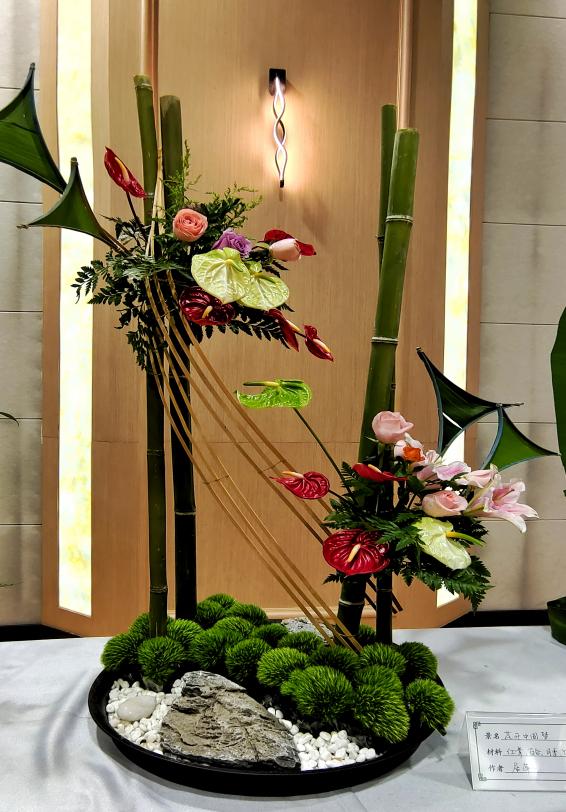 “花艺作品”由居萍教授带领学生共同完成,展现传统插花和现代插花的艺术效果。作品”永葆初心扬帆起航”就地取材,选用学生种植的花材进行设计和创作,营造出”初心”的造型,激励着我们要牢记初心使命,始终保持永不懈怠的精神状态和一往无前的奋进姿态,扬帆再启航,为实现中华民族伟大复兴的中国梦接续奋斗。作品”花开中国梦”,用竹子、红掌等材料创作而成,象征着进入新世纪以来,在中国共产党的带领下,中国经济迅猛腾飞,人民生活丰富多彩,幸福日子节节高。近年来,学院积极推动岗课赛证融通,鼓励师生积极参与各项职业技能大赛和创新创业大赛,居萍教授连续多年指导艺术插花赛项,带领学生在专业课堂、实训室苦练技艺,多次获得省一等奖的佳绩。