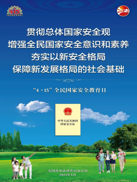 2023年4月15日是第八个全民国家安全教育日,今年全民国家安全教育日的主题是“贯彻总体国家安全观,增强全民国家安全意识和素养,夯实以新安全格局保障新发展格局的社会基础”。
