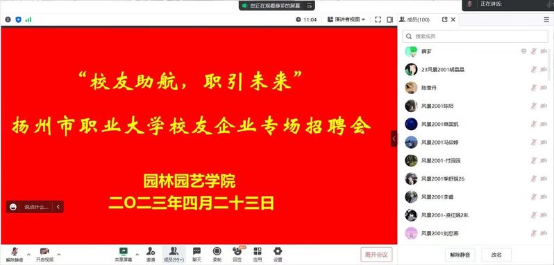 4月23日,学院组织开展“校友助航、职引未来”校友企业专场招聘会,苏州翠玲珑园林景观工程有限公司、扬州三信建设工程有限公司和扬州明景园林工程建设有限公司等企业参与。