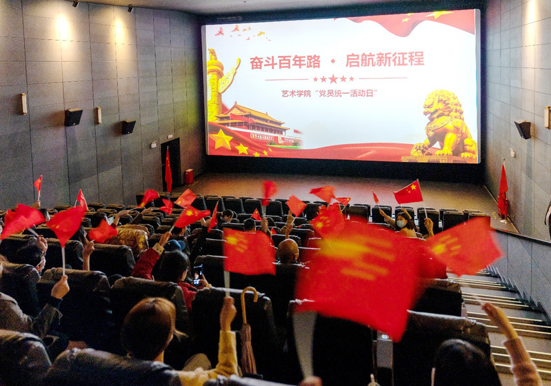 为纪念中国人民志愿军抗美援朝出国作战71周年,持续深入开展好党史学习教育,进一步加强党员的思想教育,丰富党员精神文化生活,弘扬爱国主义精神,缅怀和学习革命先烈艰苦奋斗不怕牺牲的革命精神,激发广大党员干部强烈的荣誉感和使命感,2021年10月21日下午,艺术学院党员活动日组织总支全体党员观影《长津湖》,致敬真英雄。