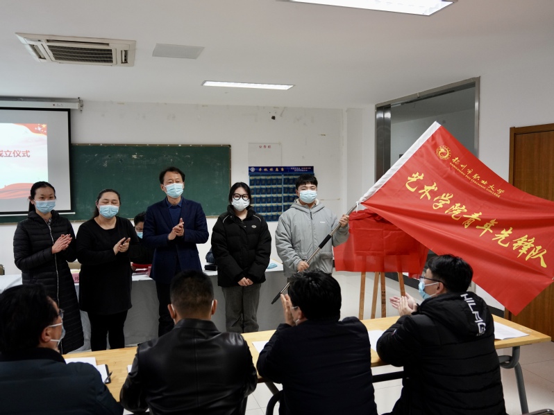 会上,学院学生管理分管领导宣读了成立艺术学院青年先锋队的决定,华炜部长向青年先锋队授旗,张军处长为青年先锋队队长发放了聘书,青年先锋队队员宣读了庄严的入队誓词。学院青年先锋队的成立旨在聚力打造一支拉得出、冲得上、打得赢的艺术青年“铁军”,吹响青年党团员使命催征的集结号,擂响投身志愿服务、学风建设、监督检查、疫情防控等任务的隆隆战鼓,勉励青年练就铁肩膀、硬脊梁,在推进学院工作高质量发展的征程中更好地发光发热。