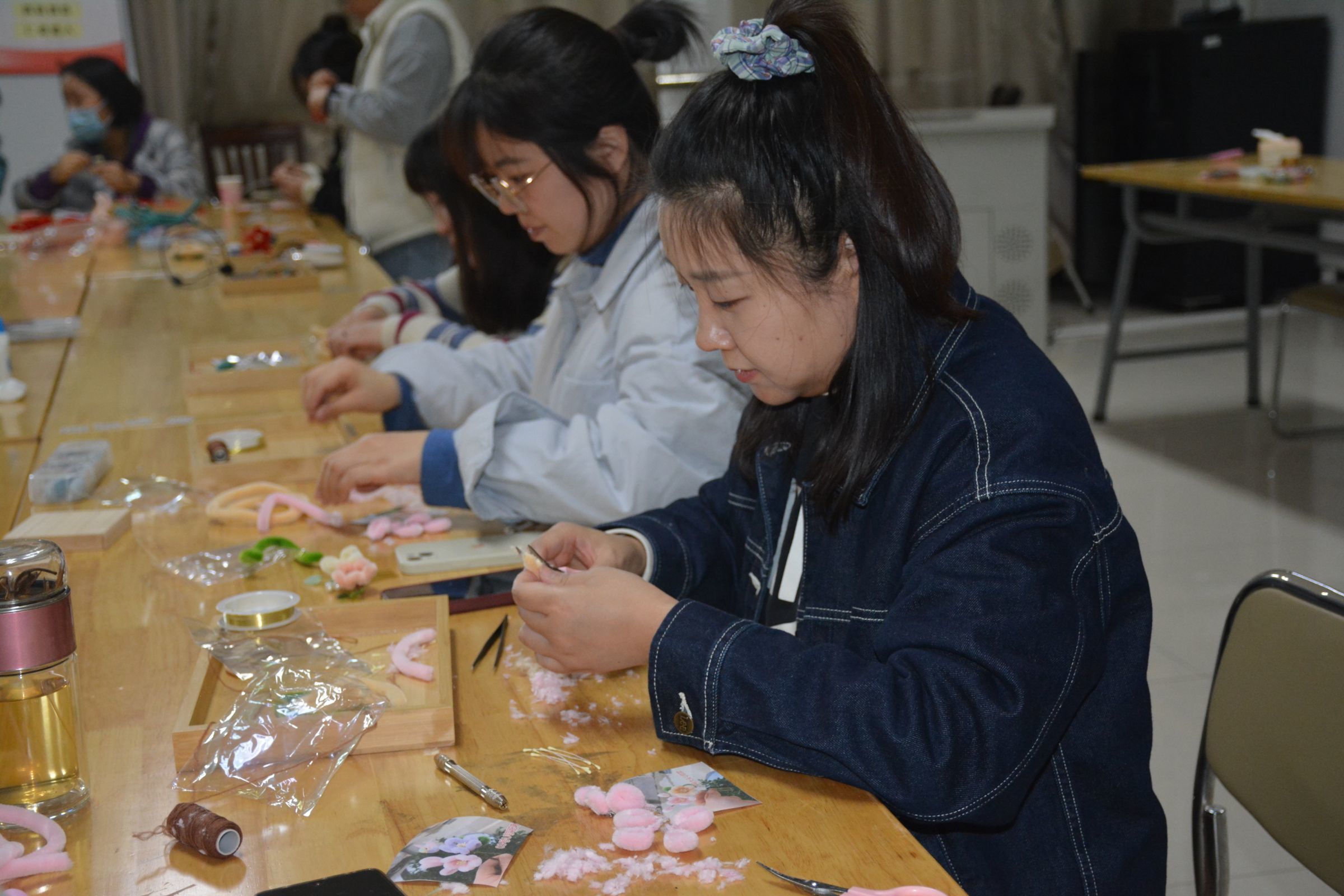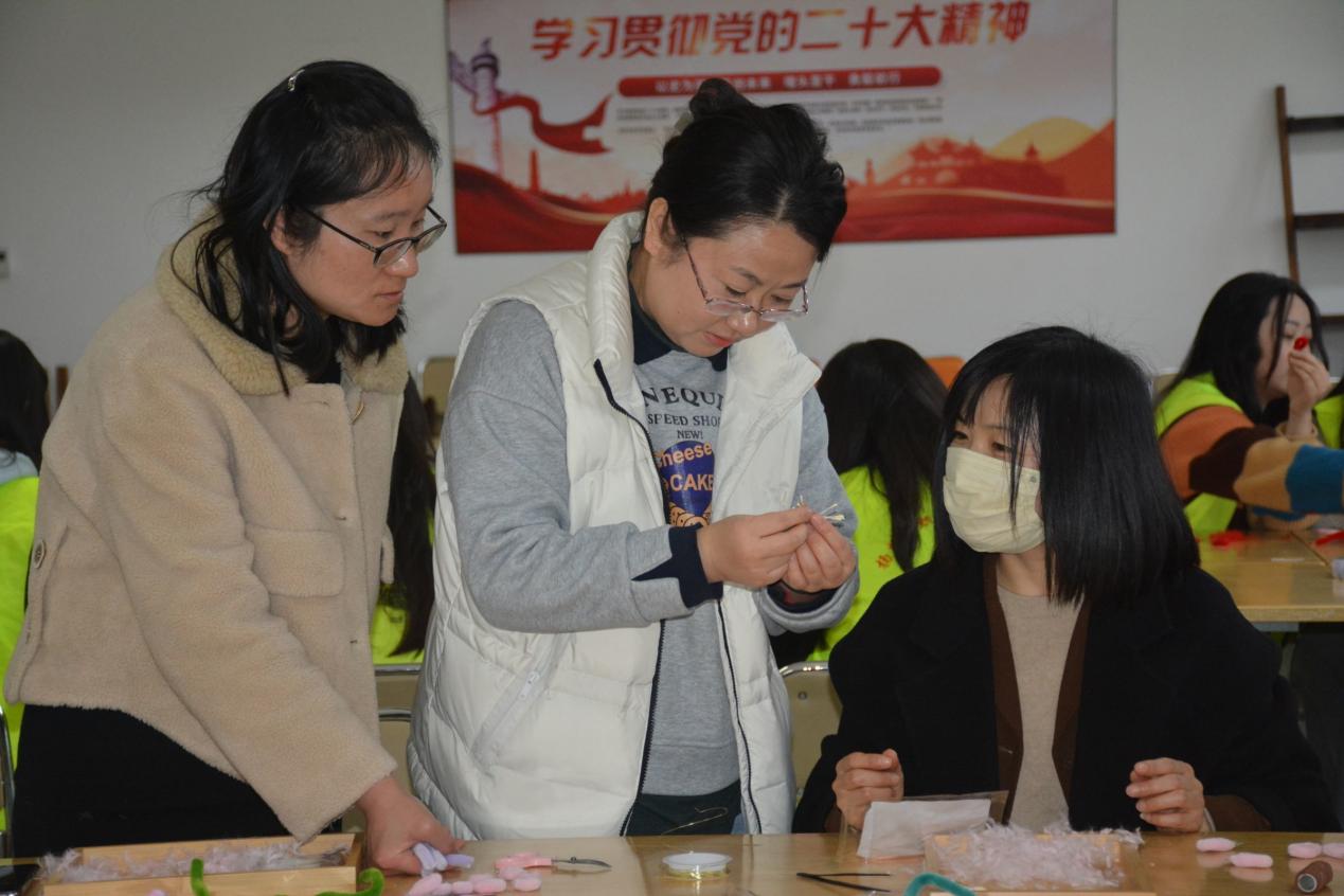 为庆祝“三八”国际劳动妇女节,3月6日下午,由校团委主办,艺术学院承办的“匠心传承、非遗绒花”制作活动,在敏行楼B314举行。活动邀请了各个学院和部门的女教师代表共同欢庆属于自己的节日。