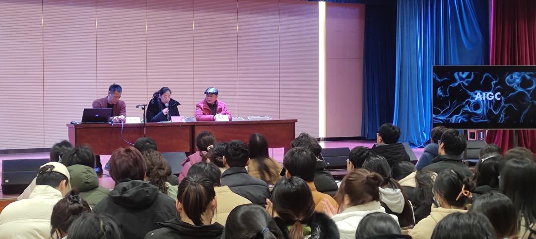 2023年12月21日下午2:30,艺术学院映月剧场内坐无空席,由南京林业大学艺术设计学院教授、硕士生导师、江苏省室内设计学会秘书长、中国室内设计学会理事专家委员会委员张乘风教授一行,为艺术学院师生带来了一场关于“AIGC技术在设计领域的探索应用(建筑、景观、室内、平面、动画、产品包装等)”的主题讲座,讲座展现了目前国内一线团队对于AIGC的应用实例,以及设计师如何利用AIGC开发高效的设计工作流程。 讲座内容主要有三方面:一是从宏观视角探讨AIGC对设计行业的影响,在AIGC这个时代趋势影响之下,设计从业者包括学生该如何看待和应对;二是对生成式AI的现象级产品GPT4、MJ、SD的用法进行演示、介绍;三是分享一线公司研发的AI辅助设计工作流程,共同探索在AIGC时代设计师需要具备的技能和需要重点培养的能力。