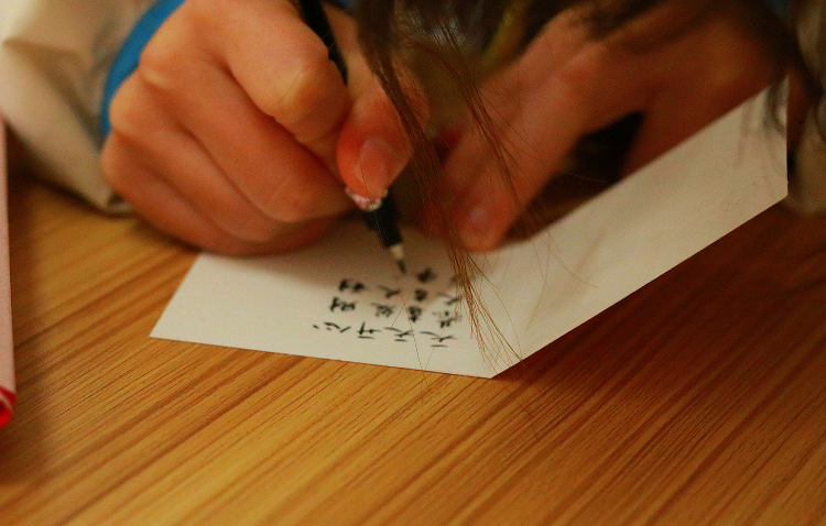 学生还将对学校及老师的新年祝福写在了贺卡上,将心意“折现”。