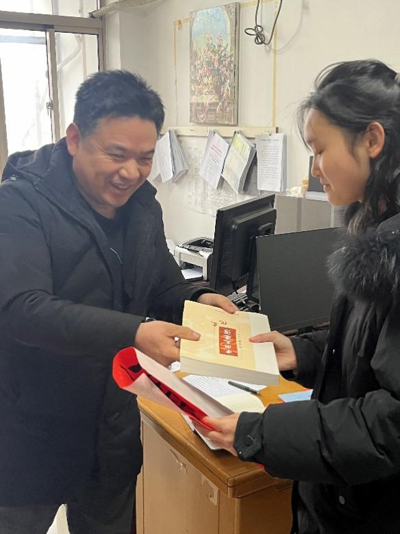 我院“三联系”工作对接帮扶学生共20名。他们在新年来临前将对老师的祝福送达,感恩他们一直以来的教导和帮扶。联系产品2201班邱景同学的领导是组织部部长华炜,邱同学表示:“华老师特别认真负责,时常联系她了解最近的学业及生活,还主动联系辅导员、班主任和任课老师了解自己情况,自己非常感谢老师,希望亲手将祝福送给他。”后勤管理处副处长薛文峰还将书籍赠送给帮扶的学生,并在扉页处写上对学生的寄语。