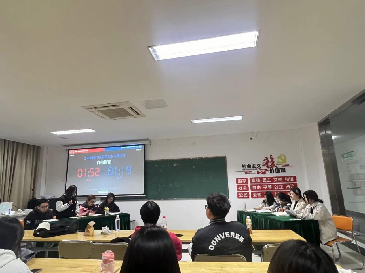 “辩是辩非辩天下之公理,论古论今论人间之万象”,为了培养同学们团队协作的能力与意识,提高同学们的逻辑思维和语言表达能力,艺术学院辩论队与经贸学院辩论队于2024年3月20日在敏行社区举办辩论友谊赛。