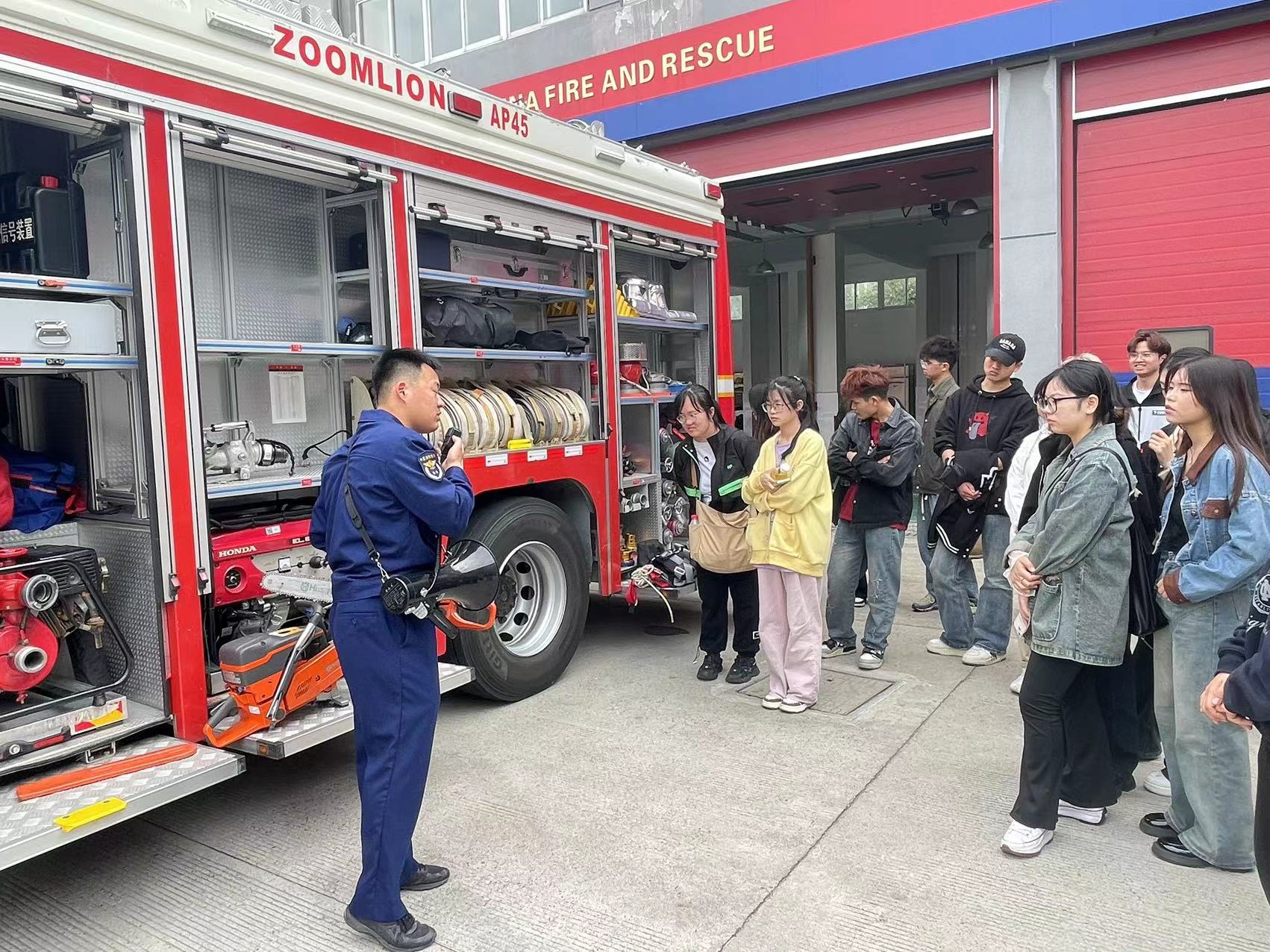 4月10日,我院在扬州市邗江区新盛路消防救援站举行了活动启动仪式并进行了消防安全知识和技能的学习。消防员向学生们生动讲解了消防车的性能及工具的使用,并实地参观了消防员的生活区和训练区。