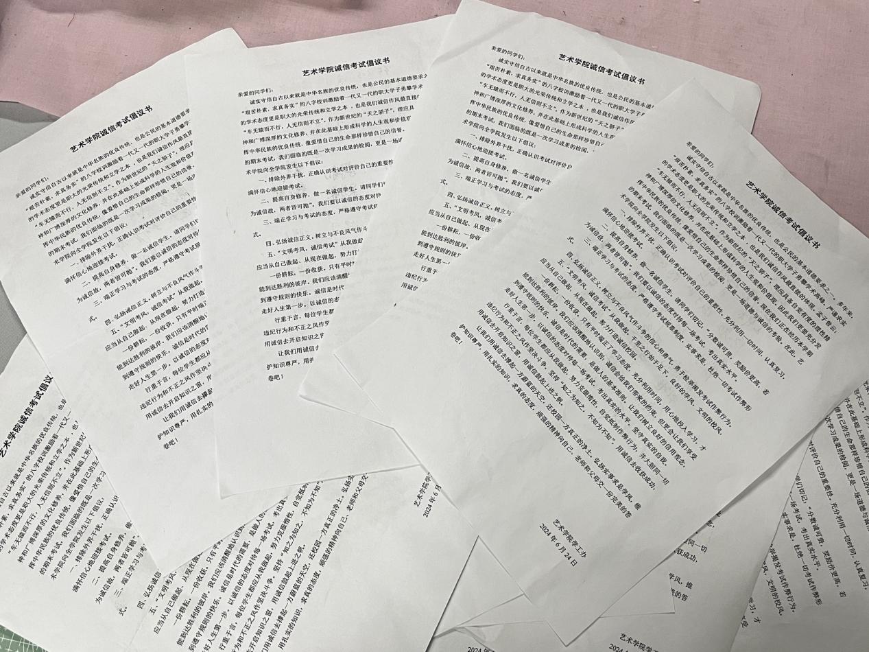 艺术学院还组织学生们签订了《诚信考试承诺书》。这份承诺书不仅是一份对诚信考试的郑重承诺,更是一份对自我品德的严格要求。学生们纷纷表示,将认真履行承诺书中的每一项内容,以实际行动践行诚信精神。