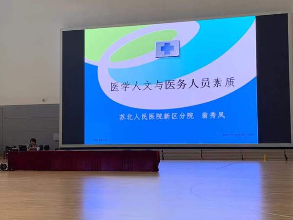 苏北人民医院新区分院护理部主任翁秀凤主讲《医学人文与医务人员素质》,她从医院用人的高度,对各专业学生应具备的专业素养进行了详细解读。她强调医学生一定要有爱护生命的淳朴情怀,要有慎独修养的思想品德,更要打好扎实的理论基础,她勉励同学们要有不断学习的进取心。在今后的三年大学生活中要着重提高政治思想素质、文化业务素质、技能素质、心理素质以及身体素质。