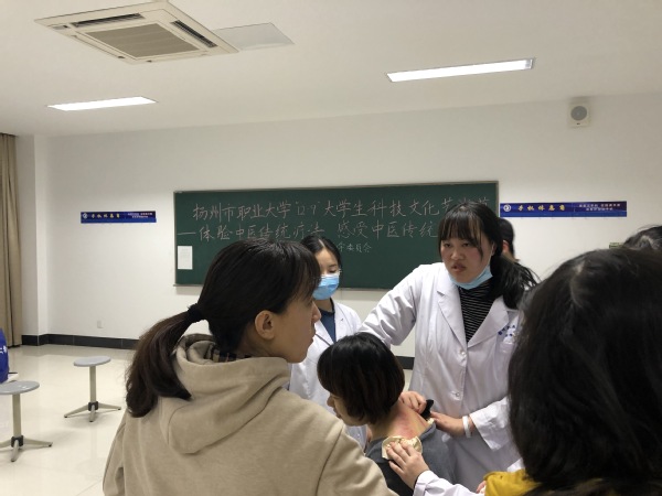 参加活动的老师们在医学院药学专业陈雁老师的带领下参观了医学院中药标本馆。医学院优秀学生向大家展示了刮痧和艾灸的专业技能,老师们观摩并体验了这些中医传统疗法,感悟到了中医文化的博大精深。陈雁向大家介绍了中医药在今年的抗击新冠肺炎疫情中发挥的重要作用。她认为充分挖掘和发展中医药和其它传统医药,对于人类战胜疾病、保障健康具有重要意义。活动尾声,陈雁为大家提供了健康咨询,向大家讲解了常见病、多发病的预防知识,希望老师们掌握基本的健康保健知识与技能,在繁忙工作的同时,关注自己的身体健康。