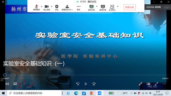 在疫情的影响下,今年大一新生10月前未安排到校,我院采用了线上讲座的形式,在入学教育环节,对全体21级护理、助产、康复、医检、药学的新生开展了实验室安全基础知识培训,进行正式开课前的实验室安全教育,讲座过程中,新生纪律良好,互动积极。