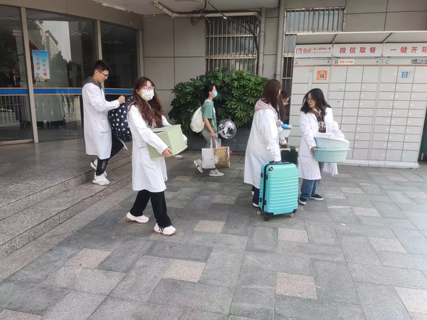 近日,医学院125名大三药学专业学生开始进入实习阶段,2022级新生学生干部和2021级入党积极分子组成的“红医先锋队”特别策划“你迎我入校我送你实习”志愿送行活动。