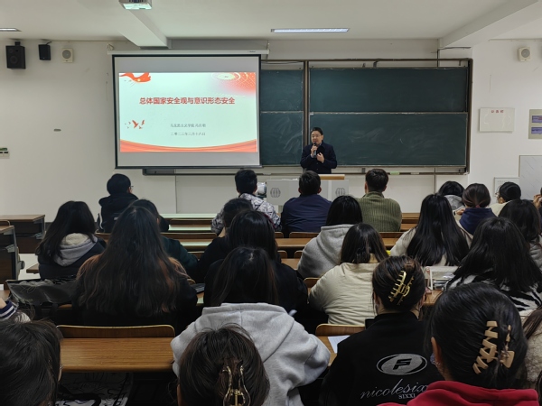 马克思主义学院冯月明院长以“总体国家安全观与意识形态安全”为主题,从五个方面展开,向入党积极分子介绍了总体国家安全观;意识形态与国家安全;总体国家安全观下意识形态安全的内涵与本质;当前我国意识形态安全面临的风险挑战;遵循总体国家安全观,筑牢意识形态安全。党的二十大首次将“推进国家安全体系和能力现代化,坚决维护国家安全和社会稳定”以专章形式写入大会报告,强调“国家安全是民族复兴的根基,社会稳定是国家强盛的前提”,他希望广大入党积极分子牢固树立国家安全观,切实增加自身责任感。