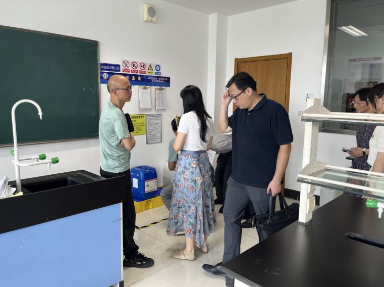 根据扬州市互联网销售危险化学品专项治理工作专班办公室的部署,823日上午在扬高校互联网销售危险化学品专项检查组来我校开展危化品专项检查,检查组一行由扬州市教育局胡文文、扬州市应急管理局于朋飞、扬州市市场监管局宋娴娴以及专家库中抽取的两位专家谭启德、李东进共5人组成。会议厅设立在医学院会议室,我校设备处陈爱萍处长、医学院卢子华书记、设备处刘荣成副处长等部门学院负责人迎接了检查组。检查组坚持问题导向,聚焦关键环节,通过查阅台账资料、实地察看、现场询问等方式,围绕制度建设、安全配备、管理使用等十三项指标开展督查,针对检查中发现的实验室安全隐患,检查组下发整改清单,我院针对个别化学试剂存储不够规范、灭火器数量配齐不足等问题,立即进行了整改。本次检查,进一步推进我院实验室安全管理零死角、无禁区。