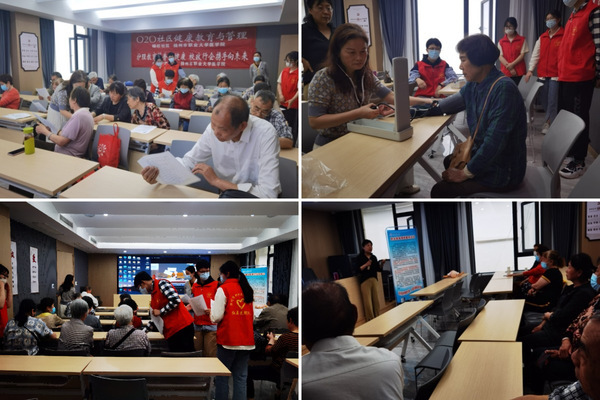 扬州市护理学会教育委员会副主任委员、我校医学院院长罗惠媛带队,6名学会专委会委员、护理系党员教师,8名医学院“红医先锋队”学生参加了活动。他们为社区居民开展传染病防控知识、慢性病预防知识、急救技能、心理健康维护等科普宣传服务,举办“糖尿病饮食管理”“噎食急救技能指导”科普讲座,开展慢性病防治知识问卷调查,指导居民使用“老年人健康APP”,师生一起为社区居民测血压、测血糖、保健按摩和推拿等。通过活动增强居民健康生活意识,为居民健康安全护航,为健康扬州助力,充分展示职业教育成果。