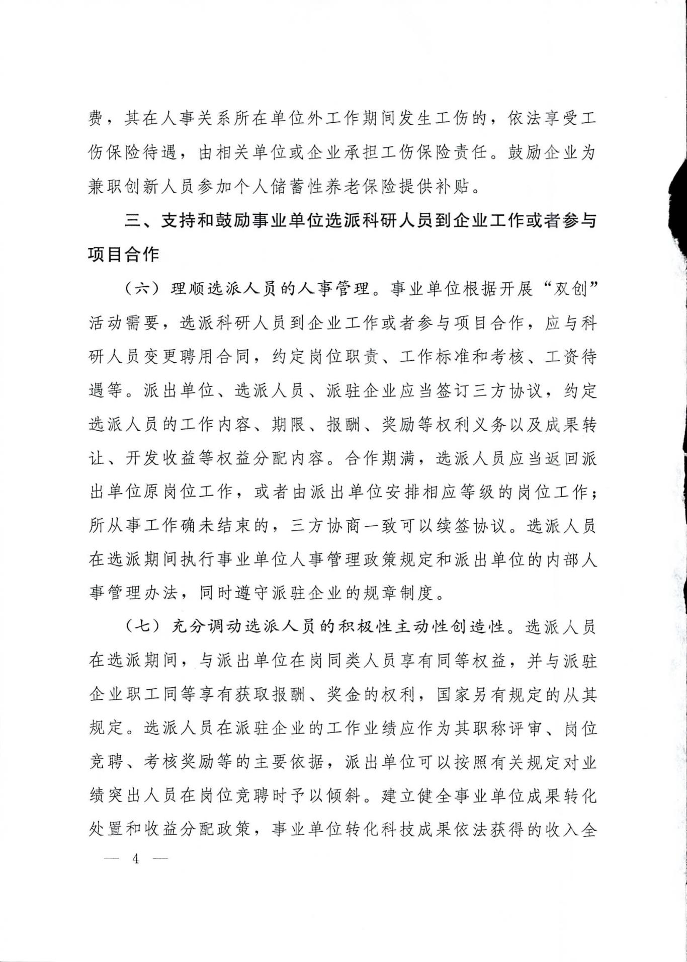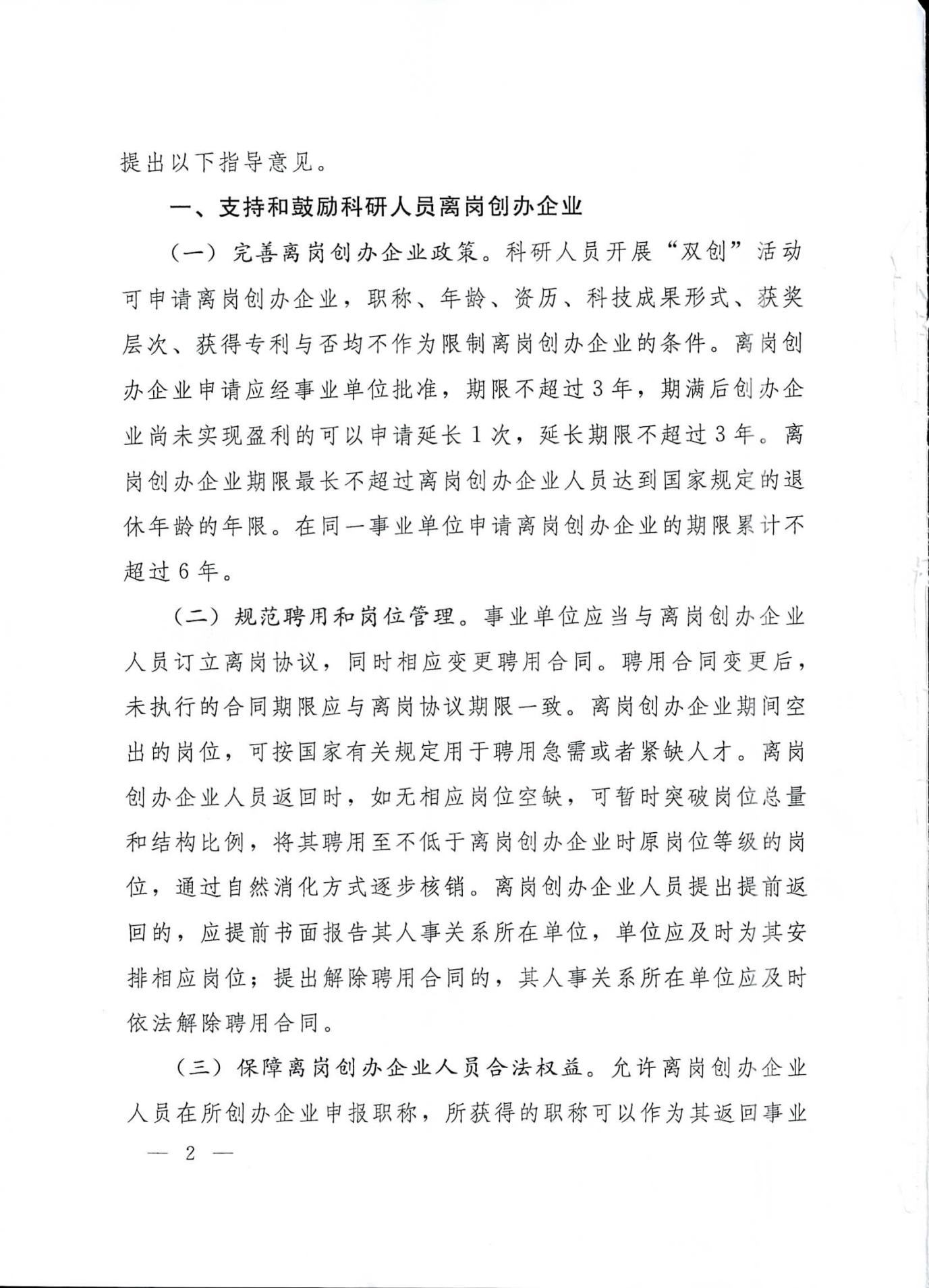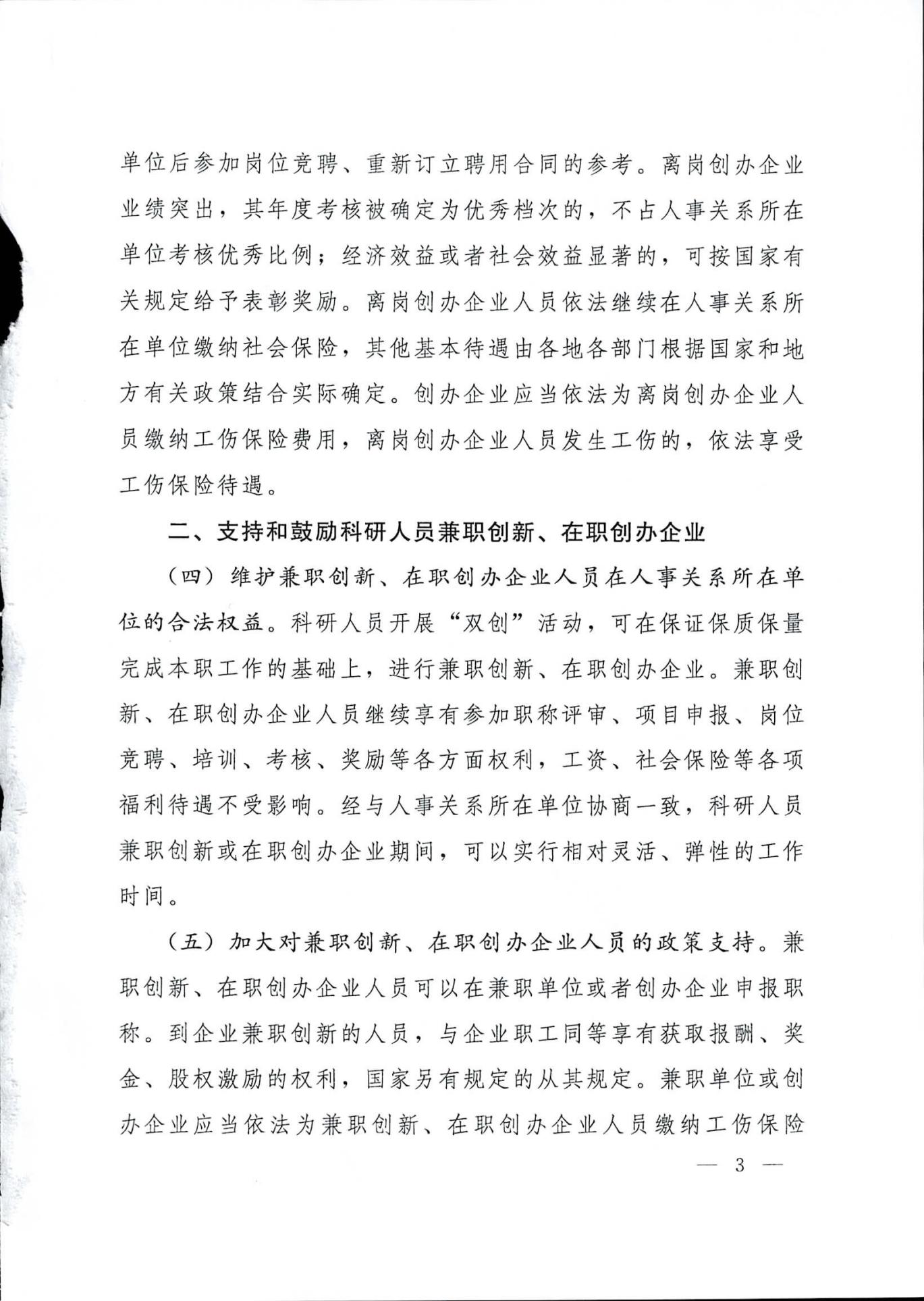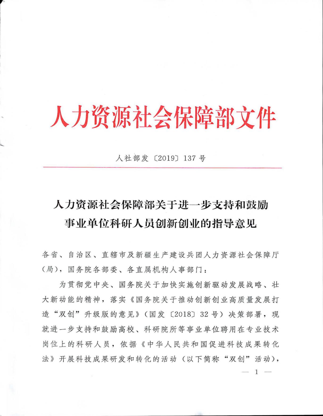 人力资源社会保障部关于进一步支持和鼓励事业单位科研人员创新创业的指导意见