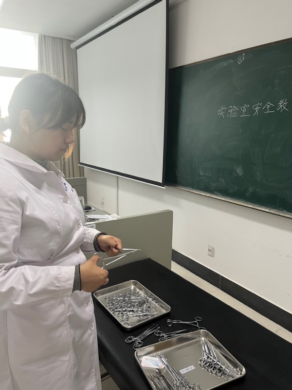 为增强师生实验室安全意识,组织学生正确的传递手术器械,保护好自己和同时参加手术的医生。