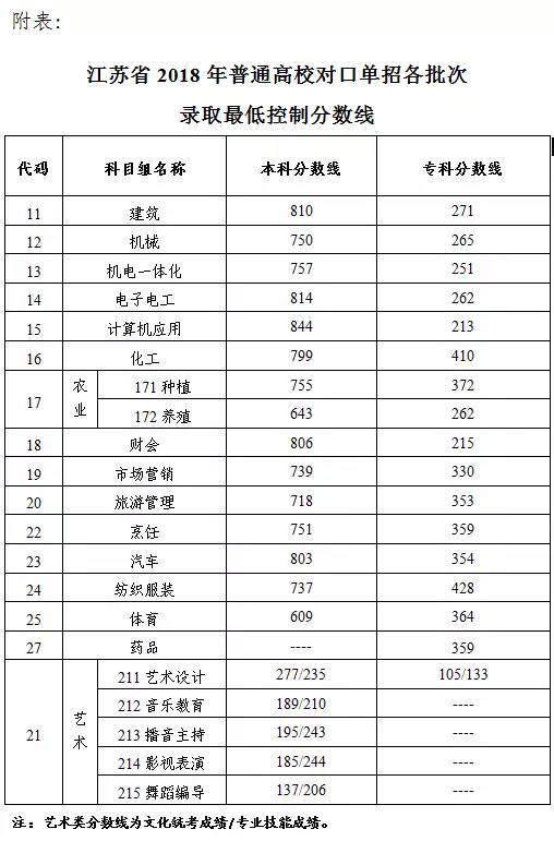 江苏省2018年普通高校对口单招文化统考评卷工作全部结束,各批次录取最低控制分数线已划定,现将对口单招文化统考成绩通知、各批次录取最低控制分数线、录取安排等有关情况通报如下: