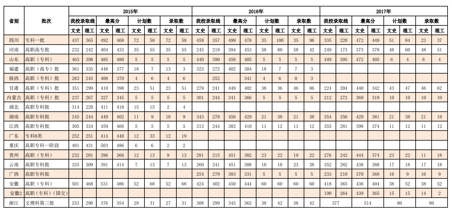 betway必威中文版 2015-2017年外省专业录取线一览表
