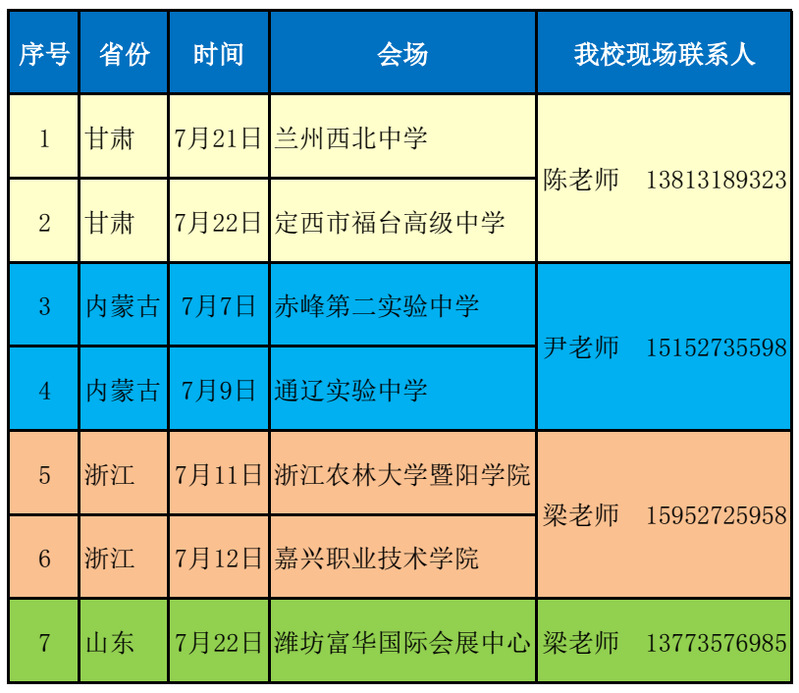 betway必威中文版 2018外省招生咨询会参会一览表