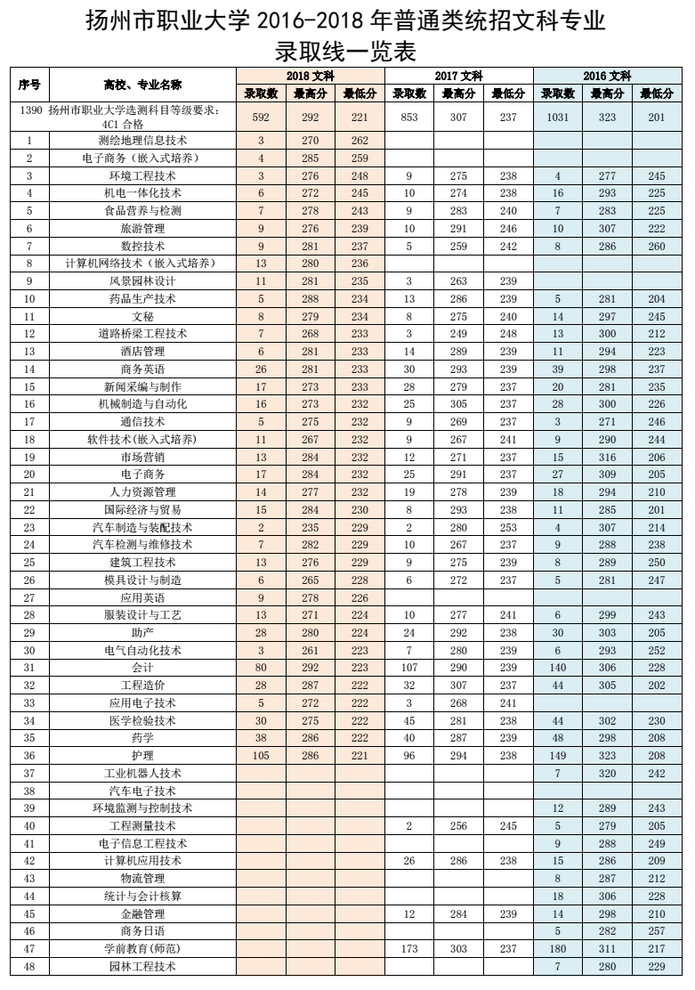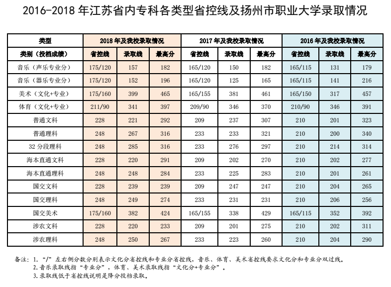 2016-2018年江苏省专科各类型省控线及betway必威中文版 录取情况
