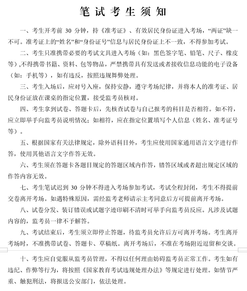 4.请认真阅读《笔试考生须知》,严格遵守考试纪律。