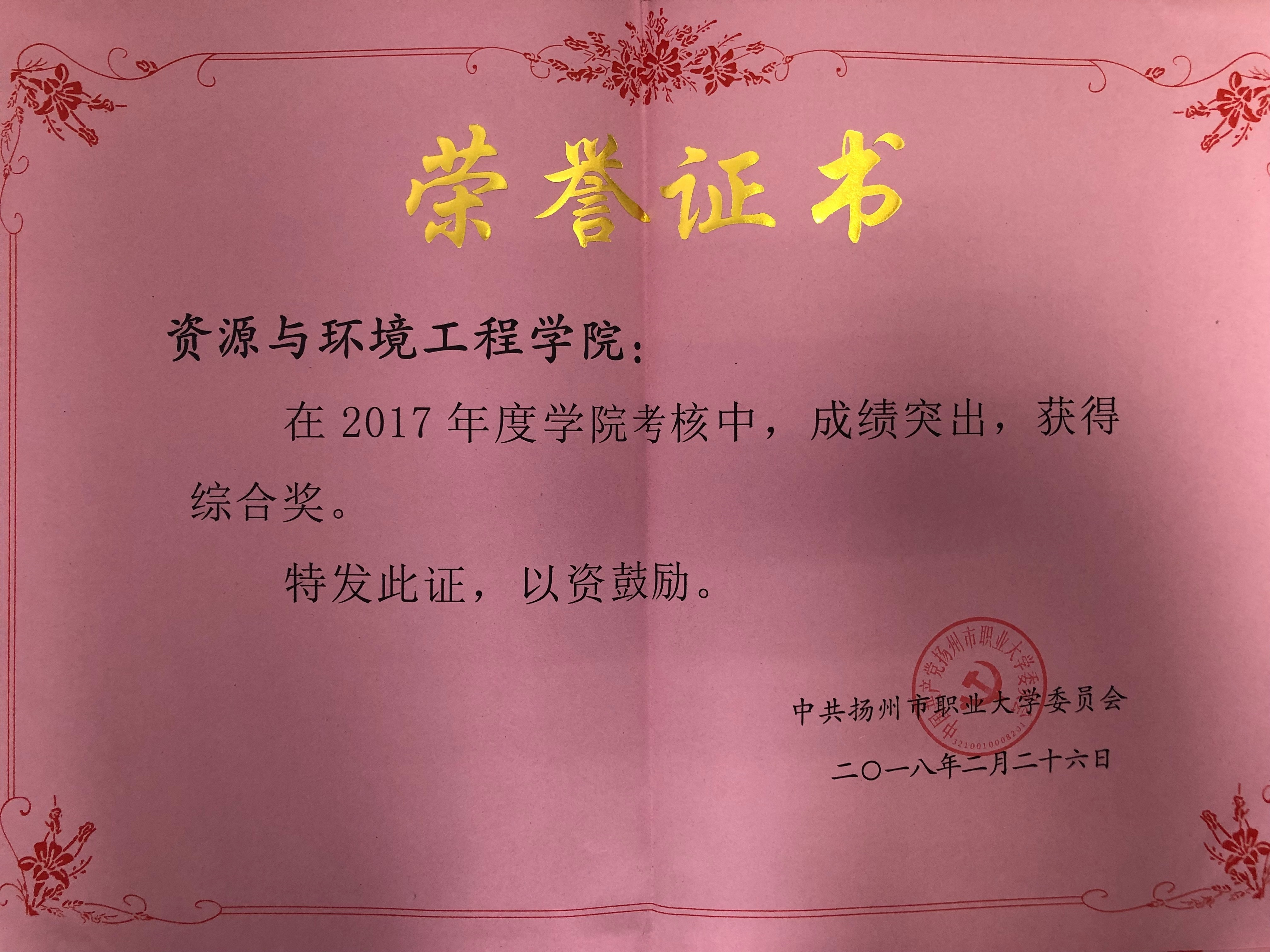 2017年度学校综合考核优秀奖