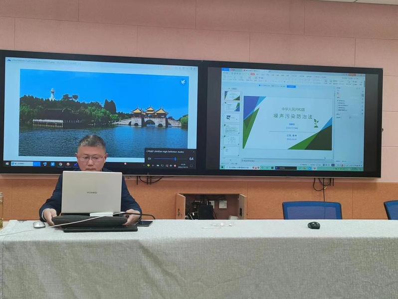 培训内容主要是解读《中华人民共和国噪声污染防治法》(2022年6月5日)及法律体系,部分环境类专业学生参加现场听课。