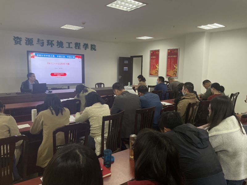 党的二十大是全党全国各族人民迈上全面建设社会主义现代化国家新征程、向第二个百年奋斗目标进军的关键时刻召开的一次十分重要的大会。大会对动员全党全国各族人民在新时代新征程夺取中国特色社会主义新胜利、全面建设社会主义现代化国家、全面推进中华民族伟大复兴具有重大现实意义和深远历史意义。资源与环境工程学院党总支组织学习宣传贯彻党的二十大精神作为当前和今后一段时期首要的政治任务。