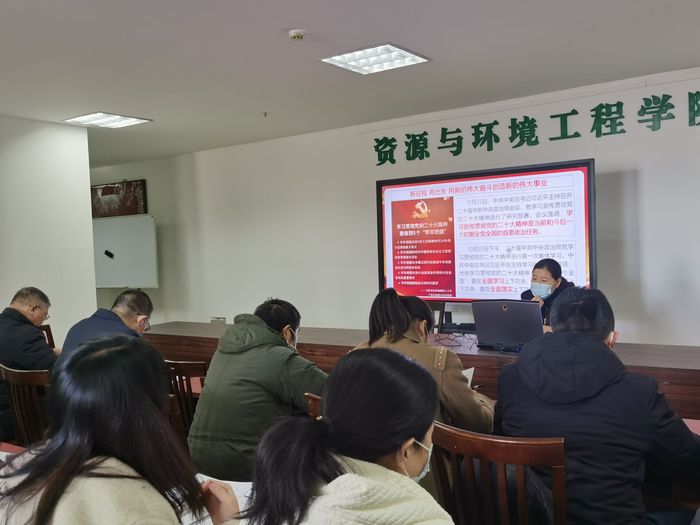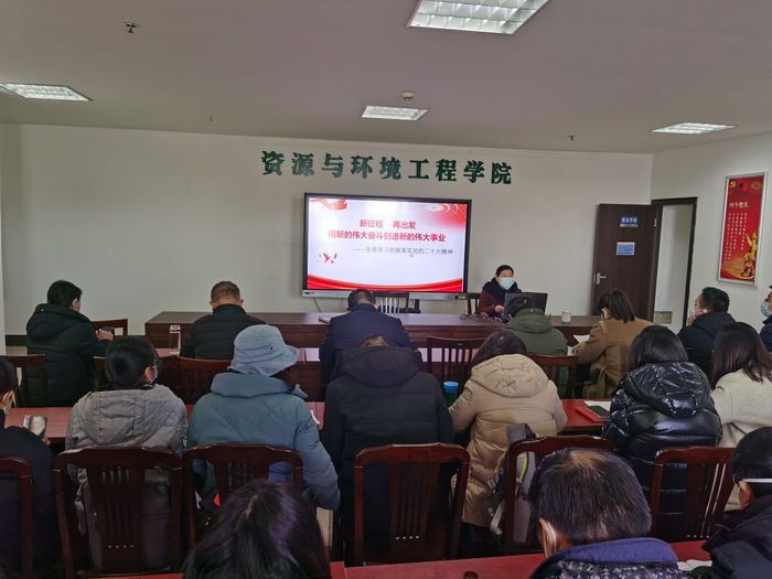 党的二十大是一次高举旗帜、凝聚力量、团结奋进的大会,为新时代新征程党和国家事业发展指明了前进方向、确立了行动指南,具有划时代、里程碑意义。资源与环境工程学院党总支组织学习宣传贯彻党的二十大精神作为当前和今后一段时期首要的政治任务。