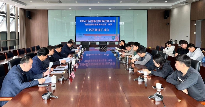 4月21日,2024年全国职业院校技能大赛“地理空间信息采集与处理”赛项江苏区国赛集训汇报会在我校召开。省专家组组长郑加柱,专家组成员焦明连、林乐胜、陈健、张清波,我校副校长黄瑞、资环学院副院长刘学方,各参赛队指导教师及参赛队员参加了会议。