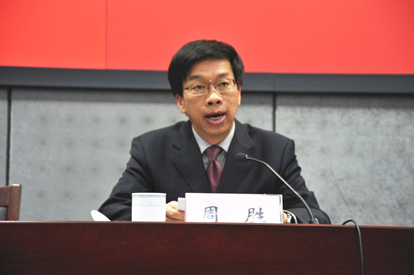 周胜在讲话中指出,党的十八大以来,习近平总书记对加强党的建设提出了一系列新要求,突出强调了党建工作和中心工作的辩证关系,严肃重申了各级党委管党治党的主体责任,明确提出了加强基层学习型、服务型、创新型党组织建设的重大任务。这些重要论述,为新的历史条件下加强党的建设指明了方向。全校各极党组织和广大党员要认真学习,深刻领会,结合实际,进一步加强和改进新形势下学校党建工作。一要扎实开展“两学一做”,切实增强“四种意识”。“两学一做”学习教育是继党的群众路线教育实践活动、“三严三实”专题教育之后,深化党内教育的又一次重要实践,也是推动学习教育从“关键少数”向全体党员拓展、从集中性教育活动向经常性教育延伸的重要举措。要通过扎实做好“两学一做”学习教育,切实强化全体党员的政治意识、大局意识、核心意识和看齐意识。二要把握从严治党要求,努力提升党建工作科学化水平。全校上下切实按照从严治党的要求,围绕中心,服务大局,着力抓好思想建设、组织建设、队伍建设、作风建设和廉政建设五项重点工作。三要落实从严治党责任,确保党建工作取得实效。要进一步强化从严治党的思想观念,将管党治党责任扛在肩上,抓好工作落实。要以“严责任”抓党建。严格落实“一把手”抓党建的责任。要以“好作风”抓党建。各级党组织、党务工作者必须始终坚持求真务实、真抓实干的作风,确保党建工作、从严治党责任不落空。要以“为民心”抓党建。要切实从师生最急、最怨、最盼的事情做起,将党建工作特别是作风建设、整改落实工作做到师生的心坎上。要以“大局观”抓党建。抓党建要善于把握整体和全局,把党建工作与学校中心工作结合起来,为学校发展提供保障。要以“硬机制”抓党建。要建立党建工作统筹协调指导机制,完善党建工作考核机制和党建工作保障机制。