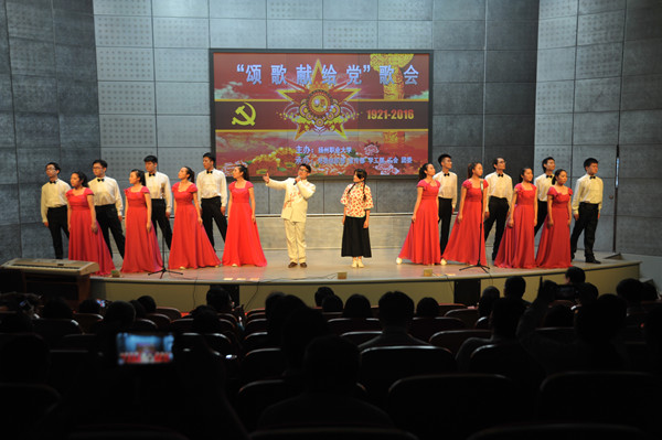 当前位置:首页党建工作6月22日下午,由党委组织部、党委宣传部、党委学工部、工会、团委联合承办的“颂歌献给党”歌会在学术报告厅举行,全体中层及以上干部,各党总支(直属党支部)委员,各学院学工办主任、团委书记、辅导员,各学院师生代表参加了活动。由各基层党组织选送的15支代表队和个人轮流登台,校领导和师生同台,演绎了一首首耳熟能详的歌曲,抒发了职大师生对党的忠诚,对祖国的热爱。