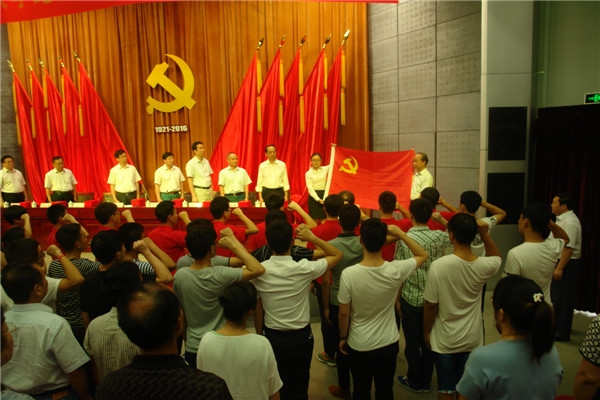 大会在庄严的《国歌》声中拉开了序幕。80位新党员代表在党委组织部长华炜的带领下,面对党旗举起右手庄严宣誓;全体老党员同时起立,重温入党誓词。