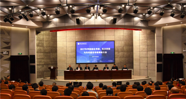 会上,校党委副书记、副校长许金如宣读了《关于给予土木工程学院等学院、部门表彰和通报表扬的决定》。对11家2016年度考核“优秀”等次以及学院综合考核单项奖的单位颁发了荣誉证书。纺织服装学院、资源与环境工程学院、财务处依次作了交流发言。