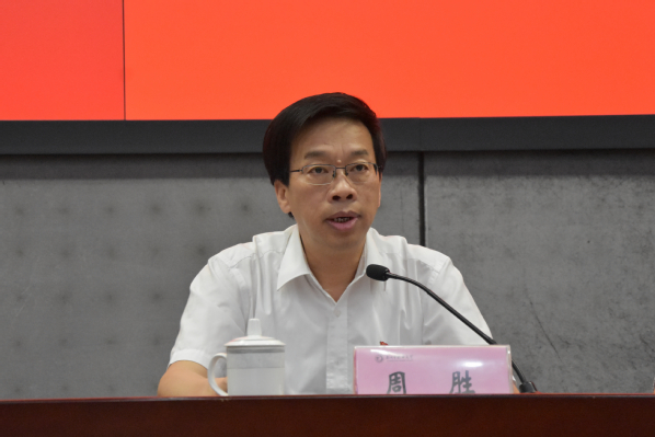 周胜强调,全校上下要切实把思想和行动统一到中央、省市委的决策部署上来,以高度的政治自觉、思想自觉和行动自觉开展好这次主题教育。结合市委第9巡回指导组的意见和党委会精神,就我校开展“不忘初心、牢记使命”主题教育,周胜提出四点要求,一是要切实提高政治站位,深刻领会主题教育的重大意义,增强使命感。全校各级党组织和广大党员干部要自觉把思想和行动统一到习近平总书记的重要讲话精神上来,牢牢把握“守初心、担使命、找差距、抓落实”的总要求,努力实现“理论学习有收获、思想政治受洗礼、干事创业敢担当、为民服务解难题、清正廉洁作表率”的具体目标。二是要准确把握目标要求,着力增强主题教育的针对性和实效性,增强紧迫感。全体党员特别是中层正职以上领导干部必须要先学一步、深学一层,以坚定的理想信念坚守初心、滋养初心、践行初心,做到真学、真信、真用;必须要带头做到守纪律、讲规矩、敢担当、做表率,以永远在路上的执着推进全面从严治党向纵深发展、向基层延伸,切实营造风清气正的育人环境;必须要勇于担当负责,积极主动作为,保持斗争精神,经受严格的思想淬炼、政治历练、实践锻炼,发扬斗争精神,增强斗争本领,投身到各种斗争中去;必须要铭记“立德树人”的根本任务,秉承“立德树人、知行合一”的校训,提高政治站位来认识和看待转变工作作风的必要性和紧迫性,以永远在路上的恒心和韧劲抓好作风建设。三是紧密结合实际,把主题教育重点措施落到实处,增强方向感。要充分借鉴运用第一批主题教育的有效做法,将学习教育、调查研究、检视问题、整改落实贯穿始终,对准目标,抓好经常性教育,在“学”字上下功夫;广泛开展调查研究,在“研”字上下功夫;全面深刻检视问题,在“查”字上下功夫;力求整改落实到位,在“改”字上下功夫。坚持把主题教育专项整治与学校第一批政治巡察反馈意见和即将开展的第二批政治巡察及民主生活会查摆出的问题整改结合起来,立查立改、即知即改。四是全面加强组织领导,确保主题教育扎实见效,增强责任感。要落实领导责任、发挥示范作用;要强化督促指导、提升工作质量;要力戒形式主义、官僚主义,做到两手抓两促进;要抓好宣传引导、营造良好氛围。