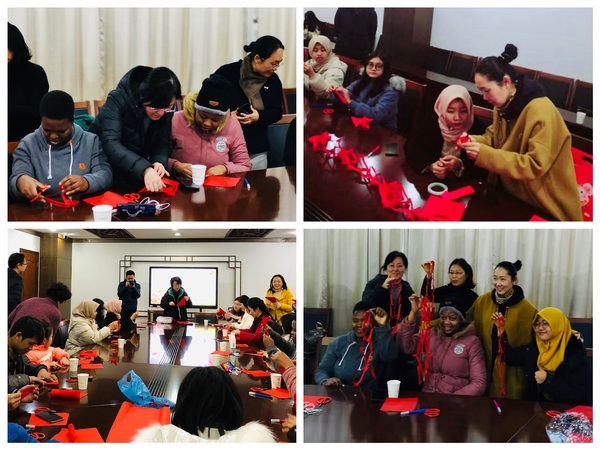 红红的剪纸凝聚着创意和祝福,既让留学生们感受到中国传统民间艺术的博大精深,也感受到中国人民辞旧迎新、接福纳祥的美好愿景,更增添了他们进一步了解中国传统文化、共筑一带一路友谊桥梁的信心与愿望。今后,致公党扬州职大支部与国际交流学院还将创造更多的机会让留学生们体验中国优秀传统文化和民俗,用文化教人、用文化育人。